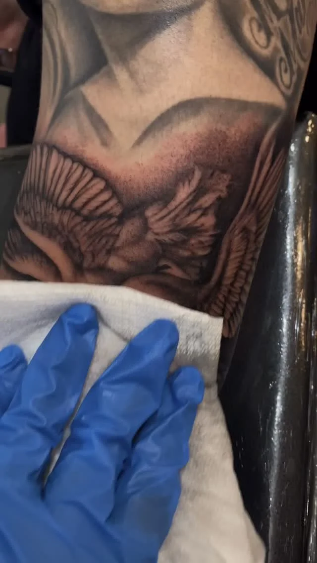 A half day is a 3-4 hour tattoo session. Within this time frame its possible to complete a palm or hand sized tattoo (4"-5" approximately). Ex. a dove, pocket watch, or skull. For hand tattoos choose this appointment type. *Disclaimer neck tattoos may take longer than half day.