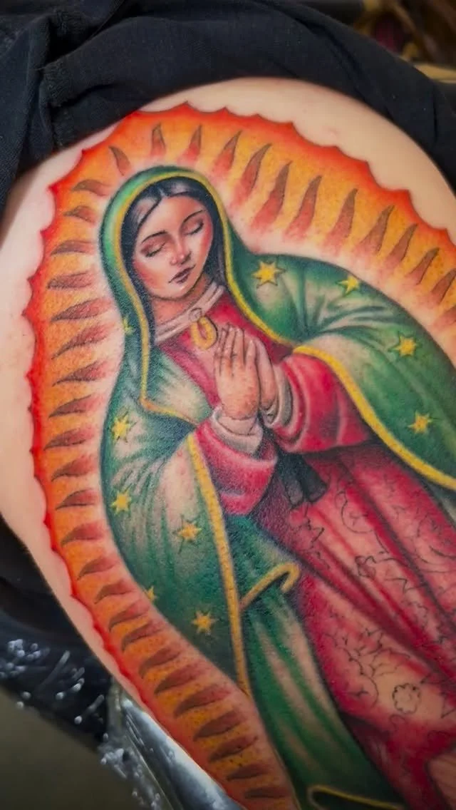 Charritas, ladies, and floral work. Please check out the Flash Page for all available work. These are medium sized pieces (measuring between 3”-5”). Sessions are approximately 4-5 hours. All designs are designed and drawn by me. Custom designs can be requested for an additional cost. For larger sized pieces or custom work, the final price will range from $600-$700.