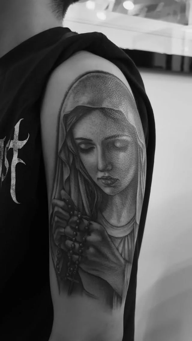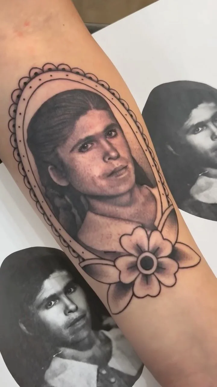 Charritas, ladies, and floral work. Please check out the Flash Page for all available work. These are medium sized pieces (measuring between 3”-5”). Sessions are approximately 4-5 hours. All designs are designed and drawn by me. Custom designs can be requested for an additional cost. For larger sized pieces or custom work, the final price will range from $600-$700.